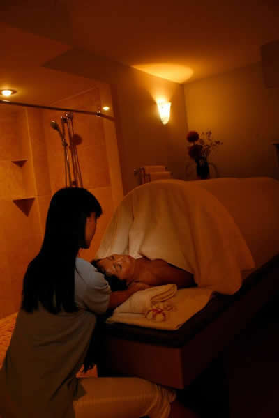 Wearing nothing, you’ll lie enclosed under an herbal steam dome on a slab of pure granite. Just your head, resting on a pillow, will emerge from the towel which drops down over the dome entrance containing aroma infused steam. For a challenge, pull the towel over your face; you will clean your sinuses! The stone is gently warmed to 103F, releasing a very safe far-infrared energy that produces a deep, profuse sweat that flushes toxins from your cells and stimulates circulation without increasing your heart rate. Proponents say Ganban Yoku also increases metabolism and stimulates your skin’s production of youth-enhancing collagen.you may call it a wonderfully amazing experience!